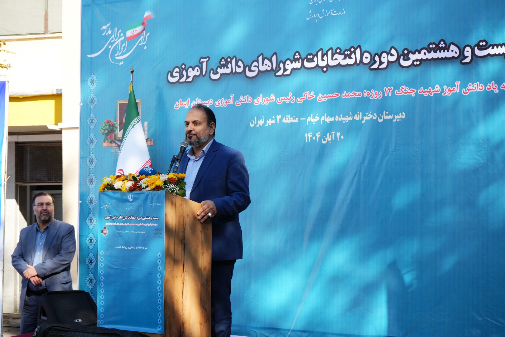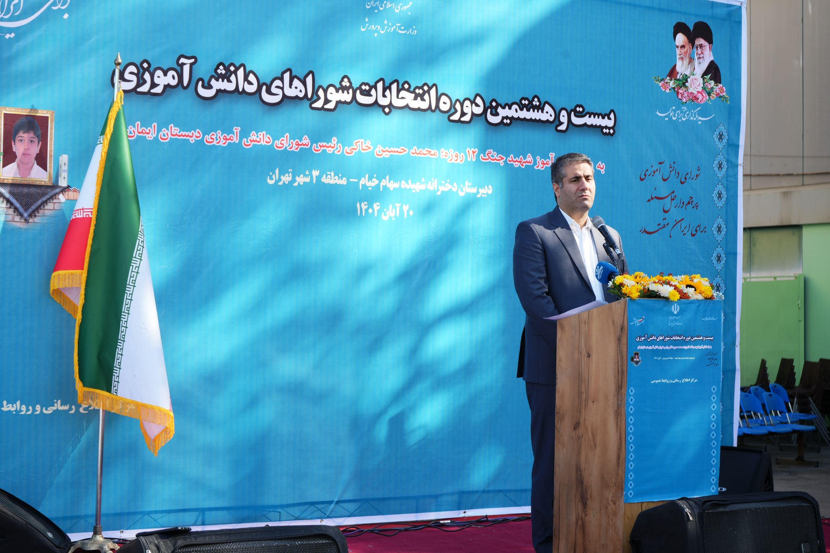 آیین نمادین بیستوهشتمین دوره انتخابات شوراهای دانشآموزی امروز ۲۰ آبان ماه با حضور صادق حسینزاده ملکی معاون پرورشی و فرهنگی وزارت آموزش و پرورش، مجید پارسا مدیرکل آموزش و پرورش شهر تهران، حبیبالله قربانیمهر معاون پرورشی و فرهنگی شهر تهران و سایر مسئولان مربوطه در مدرسه شهیده سهام خیام برگزار شد.